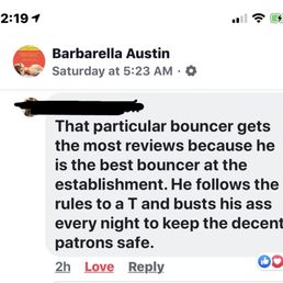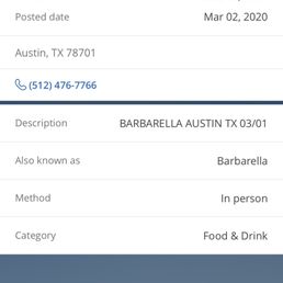 I've lived in austin for 13 years. This is by far the best place to head out to on a Tuesday night for Tuesgayz. Best music, best DJ. My friends and I always dance our butts off. Always a night to remember. There's an outdoor patio that is very large and connects to swan dive which is also an awesome bar and venue. The clientele on Tuesdays at barbarella are always an eclectic group of people. All inclusive and lovers of dancing, fun and music. There is no food offered here but always plenty of options on the street. During and after hours.